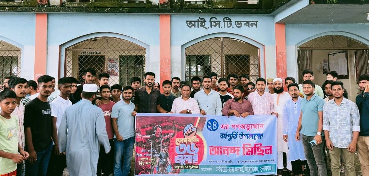 মো. শাহীন আলম, সুনামগঞ্জ প্রতিনিধি:: সুনামগঞ্জের জামালগঞ্জ উপজেলায় ঐতিহাসিক ‘জুলাই গণঅভ্যুত্থান দিবস’ উপলক্ষে বৈষম্যবিরোধী ছাত্র সংগঠনের উদ্যোগে দোয়া মাহফিল, বর্ণাঢ্য আনন্দ মিছিল ও স্মৃতিচারণমূলক সমাবেশ অনুষ্ঠিত হয়েছে।