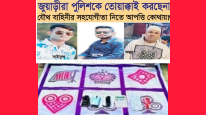 বিশেষ প্রতিনিধি:: সিলেট নগরীর বিভিন্ন স্থানে ৫ আগষ্টের পট পরিবর্তনের সুযোগ নিয়ে এবং পুলিশের নিস্ক্রিয়তার কারনে সিলেটের জুয়ার বোর্ডের ব্যবসায়ীরা মোবাইলের মাধ্যমে বেপরোয়া হয়ে উঠেছে। আইন শৃংখলা বাহিনীসহ কাউকেই তারা ...বিস্তারিত পড়ুন